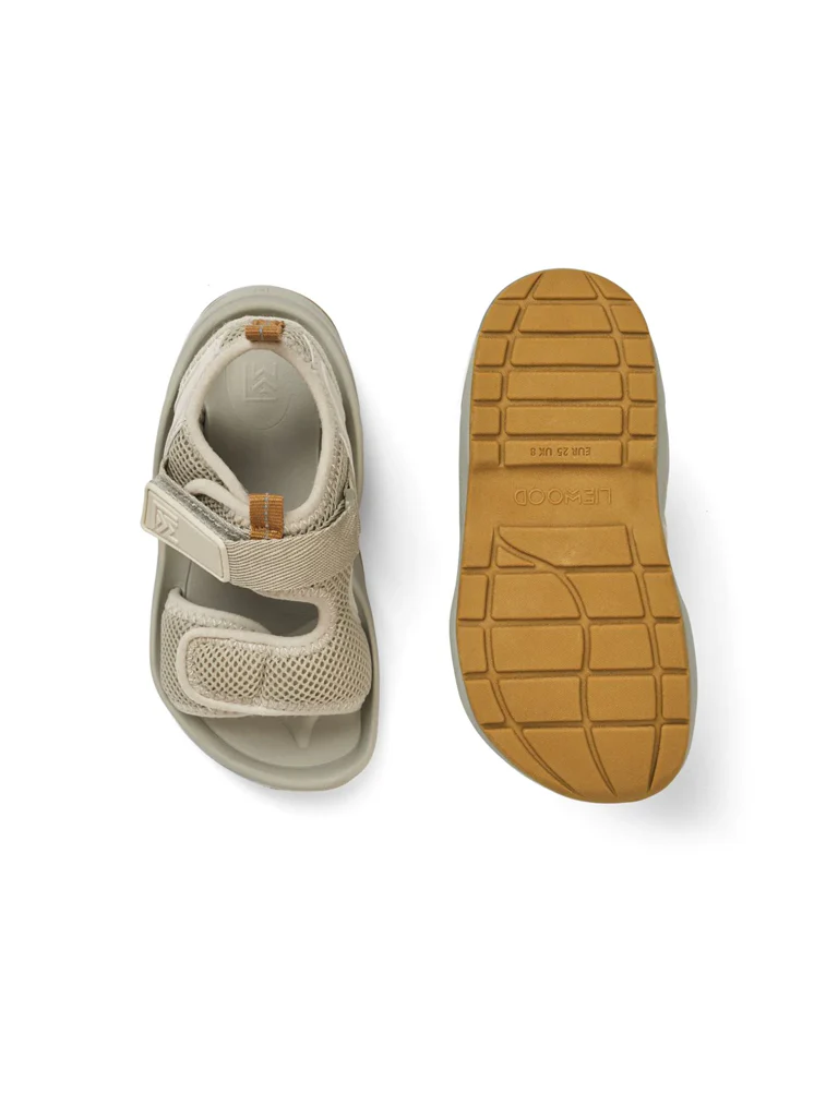 Add stability and support for little summer feet with the Christi sandals from Liewood. The compact design provides a comfortable fit with recycled mesh upper, a supportive heel strap, hook and loop closures and shock absorbing EVA footbed with arch support. Perfect for active everyday use.