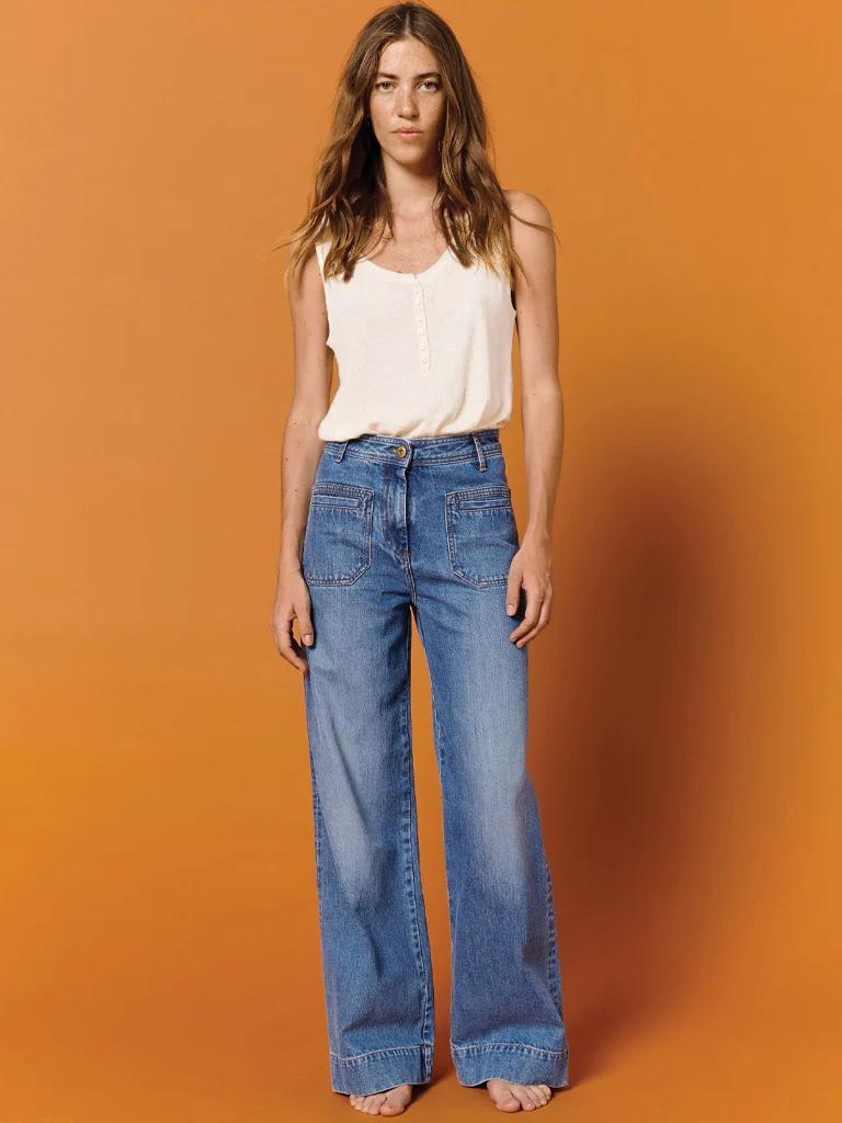 The Johnny O Jeans from Sessun are a 70s inspired flared jean. Cut from 100% stonewashed denim, the jeans have a high rise fit, with front buttoned closure and a hidden zip. Finished with front and back patch pockets.