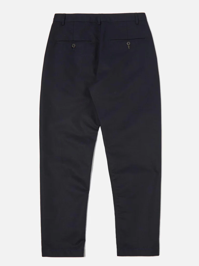 The Military Chino in Navy from Universal Works is their contemporary take on a classic style. Great fitting and flattering, these are not too tight and not too loose, clean and neat through the hips and thigh, with a taper towards the ankle.
